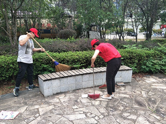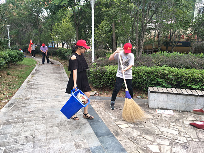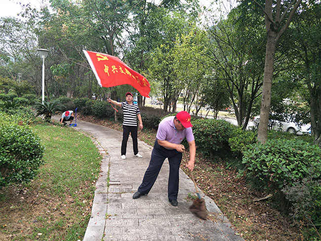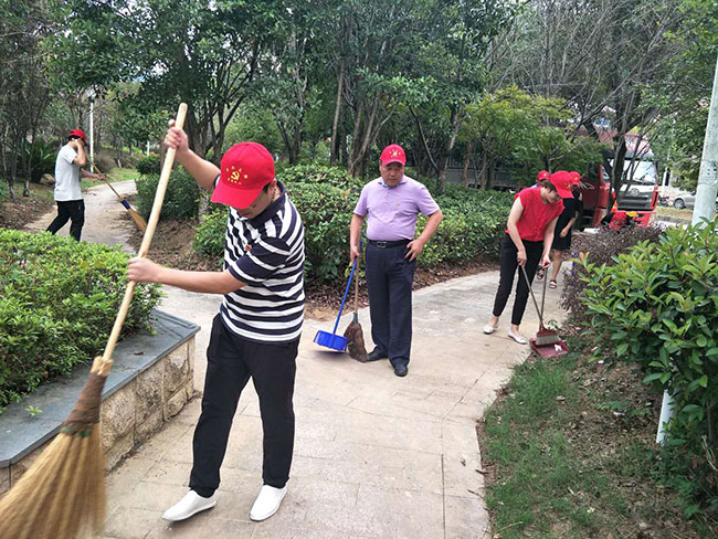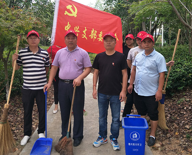 2018年9月25日中兴党支部为了发挥“我是党员我带头”的先锋模范作用,为了宣传城乡环境综合治理有关政策,增强市民环境卫生和社会公德意识,提升文明素质。支部书记李国忠、副书记李冰和纪检委员范光亚带领着公司党员和员工组织开展“保护环境从我做起”的义工活动,十余人拿着扫帚、提着簸箕、垃圾桶结队来到小区广场,清理道路两边及绿化带内的垃圾和杂物,打扫过道的垃圾和树叶。此次活动让每一位接受劳动锻炼的同时,也用实际行动感染、影响着身边的每一个人,为社会的文明献一份力量。大家以行动丰富了实践生活,对于继续发扬无私奉献的光荣传统,弘扬志愿精神具有积极的促进作用。
