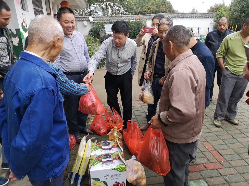 支部书记李国忠带领党员和员工给敬老院送上水果、蛋糕点心、食用油、大米、保暖品,并和老人们拉家常,讲故事,老人们品尝着水果、点心,和我们一起聊天,纷纷点头微笑。并从敬老院董院长那解每一个老人的身体情况和需求。整个活动在这个金秋十月温暖了每一个人的身心。