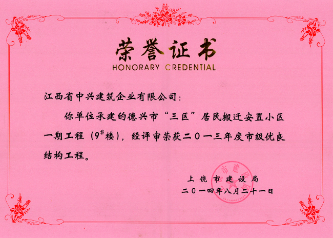 2013年度市级优良结构工程